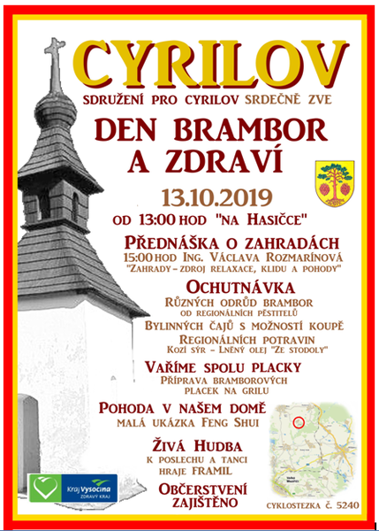 zrav kraj_2014Tento rok jsme svátek brambor spojili s Dnem zdraví. Klid, relax a pohoda v zahradách byla přednáška Ing. Václavy Rozmarínové z rodinného zahradnictví Petráveč. Ukázka pohody v našem domově dle návrhu Ing. arch. Evy Bartošové z Radenic. K ochutnání i k prodeji byly lisované oleje za studena a výrobky „Ze stodoly“, cereální kaše fy Nominal, bylinné čaje, výrobky z kozího mléka a samozřejmě výrobky z brambor.
