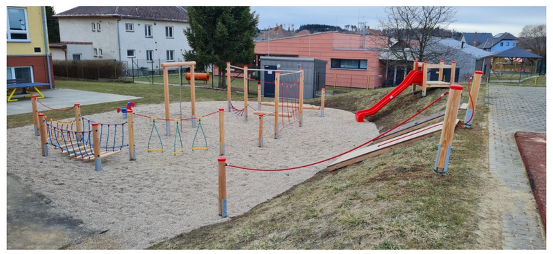 Nového hřiště obsahuje 8 herních prvků pro děti a 1 workout sportovní sestavu. Celé hřiště je pojato tak, aby sloužilo co nejširší veřejnosti, tzn. všem generacím občanů obce. Obsahuje jak posilovací sportovní workout prvky pro mládež, dospělé i seniory, tak herní prvky dětského hřiště pro děti.