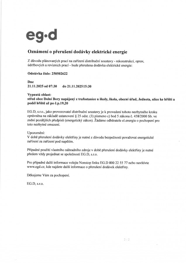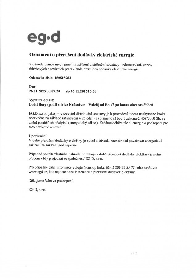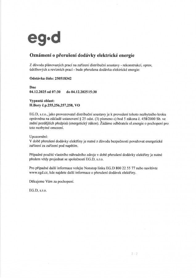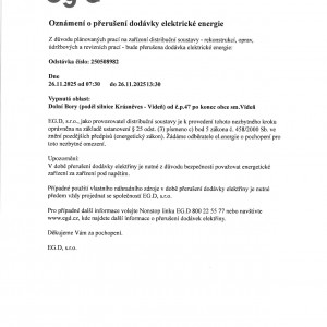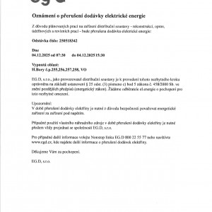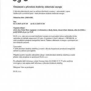Aktualizace: Odstávky elektřiny 21. 11., 26. 11., 2. 12., 4. 12.